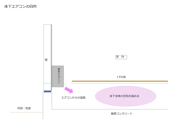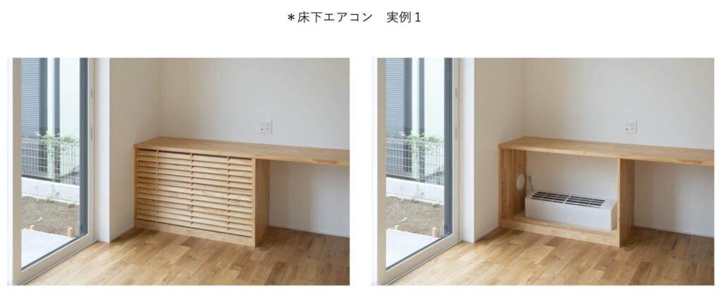 その空間に向けて、通常部屋の上部の壁に設置する壁掛けエアコンを設置する方法を床下エアコンと呼んでいます。