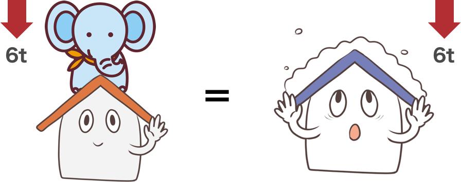 60㎡の屋根に乗る30㎝の雪の重さはおよそ6tになります。そう、大人の象と同じなんです。
